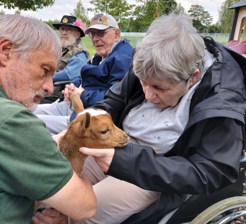 De bewoners van verpleeghuis de Irishof vonden het leuk om wat dieren te zien. Op schoot te hebben en te aaien, de mensen genoten ook van de thee en lekkers. Een gezellige middag voor allemaal, ook voor de vrijwilligers van de Dierenweide.